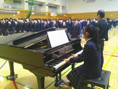 3年生にとっては最後の校歌伴奏。