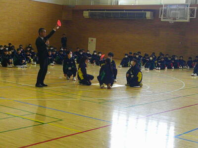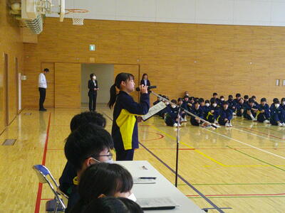 最初に全校生徒が体育館に集合し、今年度の種目について実演を交えながら説明を受けました。