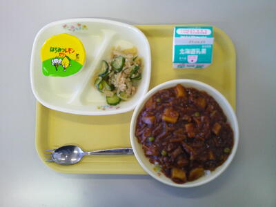 ごはん 牛乳 ハヤシライス 大根とツナのサラダ はちみつレモンゼリー