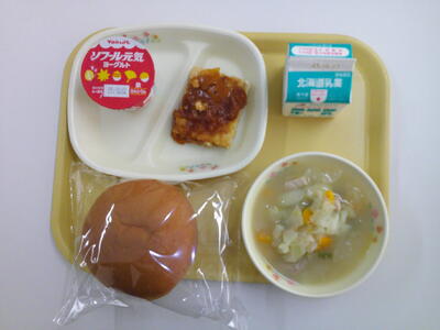 丸割りパン 牛乳 ポトフ 豆腐ハンバーグ ソフール