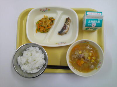ごはん 牛乳 みそ汁 (豆腐、油揚げ) たらサンギ キャベツのごま煮