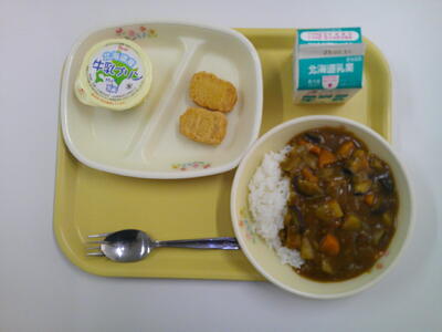 ごはん 牛乳 夏野菜カレー チキンナゲット(2個) 牛乳プリン