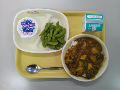 ごはん 牛乳 夏野菜カレー 枝豆 ハスカップゼリー
