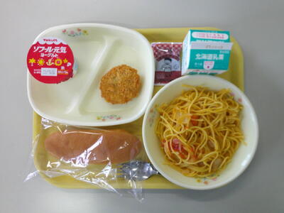 小型コッペパン 牛乳 フレッシュトマトのスパゲティ いかカツ チョコクリーム