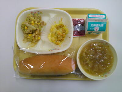 小型コッペパン 牛乳 スバゲティミートソース 星のコロッケ ハスカップゼリー