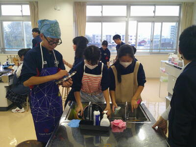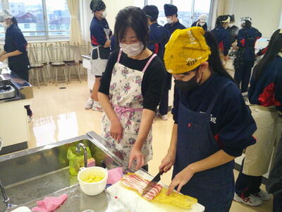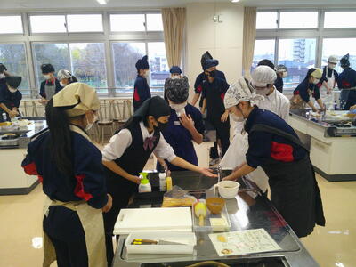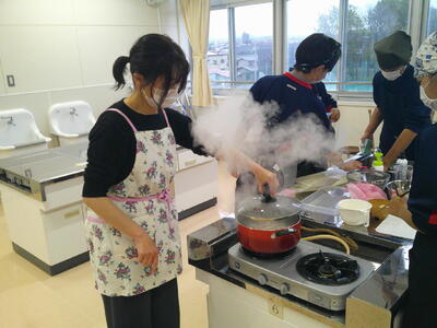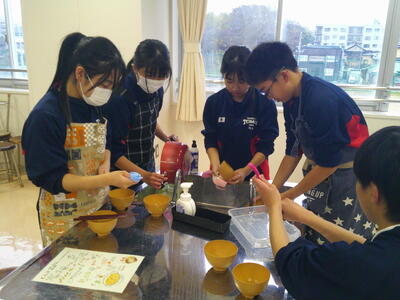 今週、1年生の各学級で調理実習が行われています。