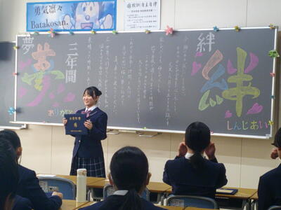 卒業式総練習 ブログ 03/12 パブリック tomoe 3月12日。卒業式の総練習が行われました。 証書授与の様子 在校生合唱。 明日は自宅待機の1年生も、2年生と一緒に声高らかに歌い上げました。 3年生記念合唱。 聴いた在校生が号泣する圧巻の合唱でした。 総練習後、在校生から、2年間の感謝を込めたサプライズが。 旅立ちの日にをプレゼントとして合唱しました。 今度は3年生が号泣する番です。 心温まる総練習となりました。 感動の卒業式になること間違いなしですね。