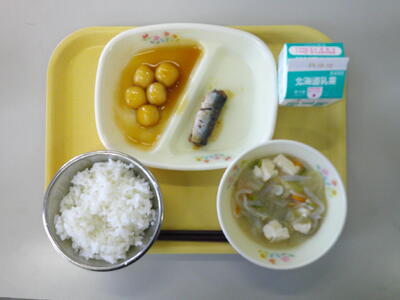 ごはん 牛乳 さつま汁 いわしの味噌煮 お月見団子