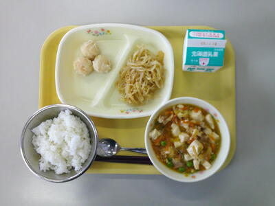 ごはん 牛乳 五目あんかけ豆腐 えびシュウマイ(3個) もやしのお浸し