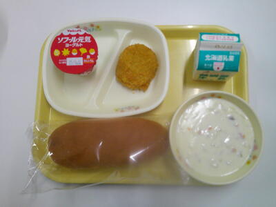 コッペパン 牛乳 ホワイトシチュー メンチカツ ソフール