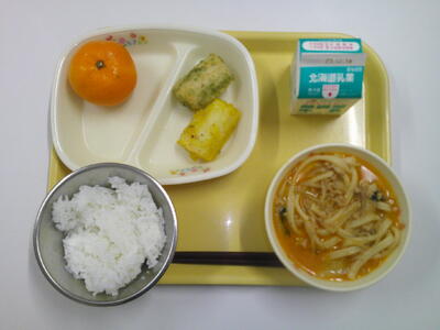 減量ごはん 牛乳 坦々うどん ちくわ2色揚げ みかん