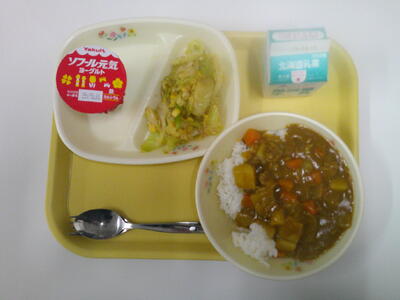 3月9日(月) 投稿: tomoe3 (03/09) ごはん 牛乳 ポークカレー キャベツとコーンのサラダ ソフール 本日の給食は、巴中学校給食委員と巴中学校ホームページのコラボ企画献立です! ! Tweet -