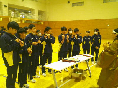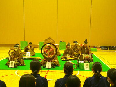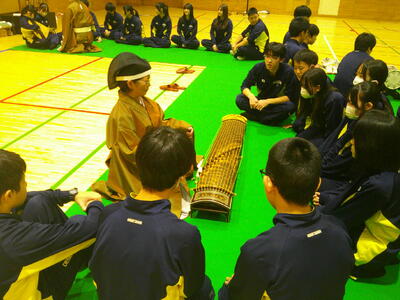 12月9日。2年生を対象に、本校のアウトリーチ(外部講師よる出前授業)による雅楽の授業が行われました。
