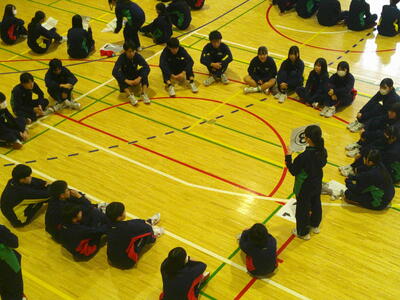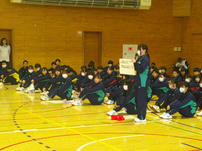 1回目は体育館で、北海道教育大学函館校の石森広美教授を招き、SDGsの概要について、対話を交えながらお話しいただきました。