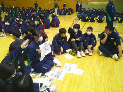 12月24日。1,2年生が作った3年生への受験生応援企画のメッセージが各学級で手渡されました。